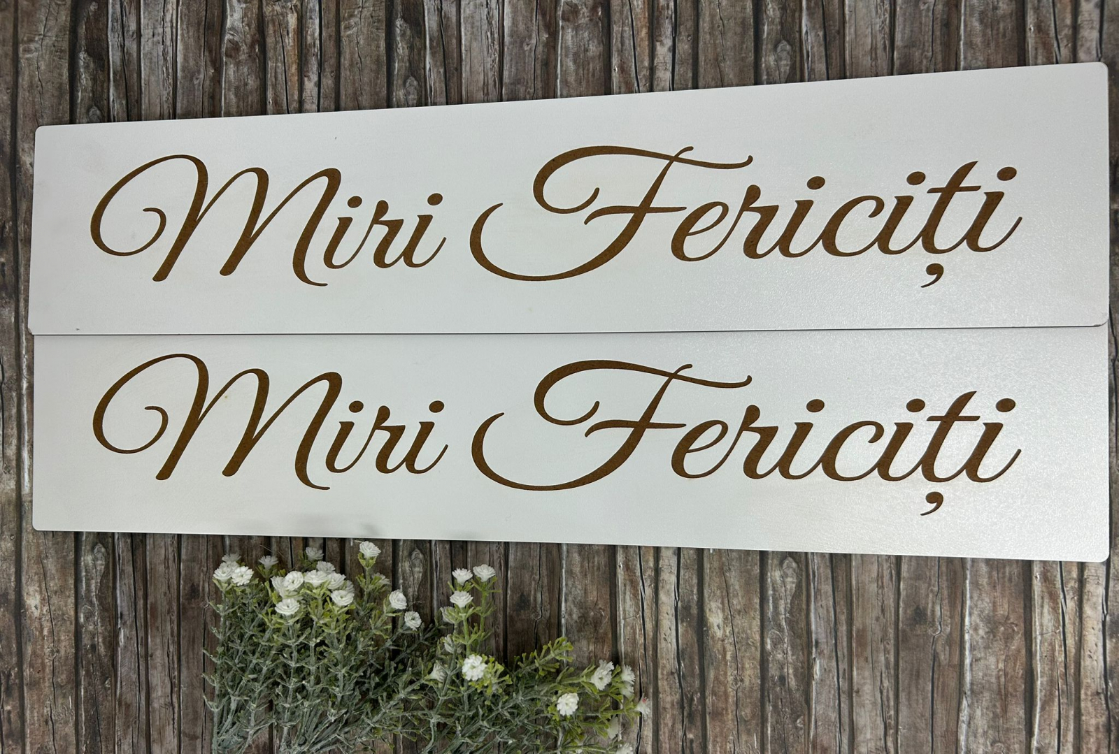 Adăugați o notă personalizată și elegantă evenimentului dumneavoastră special cu setul de plăcuțe din lemn gravate la laser „Miri Fericiți” de la RoArtizan. Fiecare plăcuță este realizată cu atenție la detalii, oferind un design rafinat care va completa perfect decorul nunții. Fabricate din lemn de calitate superioară, aceste plăcuțe sunt nu doar un simbol al iubirii, ci și o amintire durabilă a zilei voastre speciale.